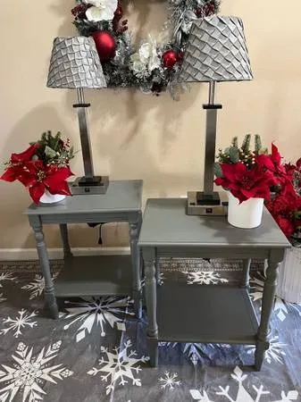 Pair of Gray End Tables 16 x 20 x 24 with a shelf on the bottom in like new condition $100 Cash only for the pair Call or text 775-378-8162 Located off of Sparks Boulevard/Baring Lamps add $25 each