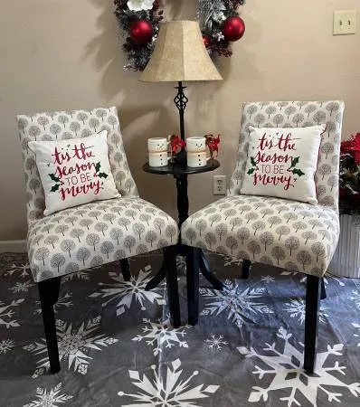 NEW Pair of Gray Print Chairs 22 x 24 x 36 with black legs Great for a bedroom or small space $100 Cash only Call or Text 775-378-8162 located off of Sparks Boulevard/Baring Side Table add $25 Lamp add $25
