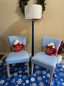 NEW Pair of Blue Faux Leather Chairs 20 x 20 x 33 with extra wide seats in mint condition $100 Cash only Call or Text 775-378-8162 located off of Sparks Boulevard/Baring Lamp add $50