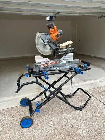 Ridgid 12 miter saw model # R 4221 with Delta blue stand asking $450 for both call 512-584-7516.
