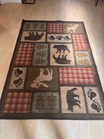 Approximately 91 x 62. Has been shampooed and vacuumed good to go. 907-301-8022