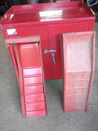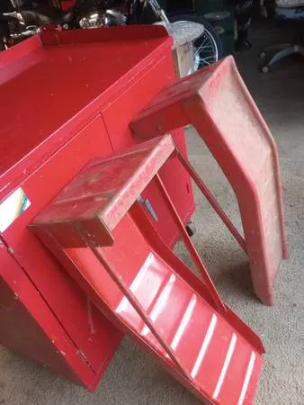 Nice ramps you could use them for a car truck or an ATV. Great condition. Measurements are 10 inches high 11 in wide 34 in tall. If interested text me or call and leave a voicemail and I will get back to you. Please no emails. 330-937-8108 thank you. Toolbox that they are leaning on is also for sale for $60.