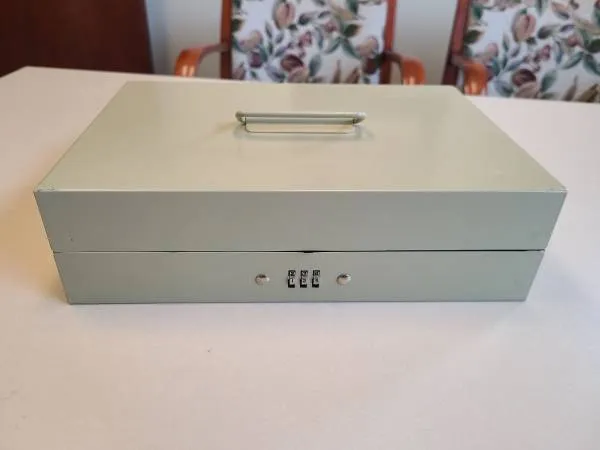 Used MMF Industries brand Metal Cash Box for Sale. Sorry does not come with cash inside Has 4 spring clips to hold bills securely and a tray to hold loose change. Also has a combination lock to secure the cash In good working condition with instructions on how to change the combination lock. The color of the box is sand Dimensions: 111/2 x 75/8 x 31/4 $40 Call or text Jeff 559-647-0611