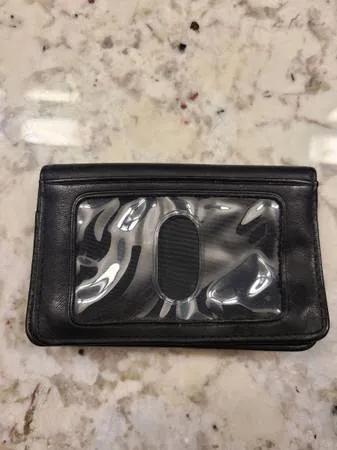 2 black leather cardholder wallets for sale. Both of these have never been used Dimensions: 4 x 31/4 & 41/4 x 3/4 x 23/4 $10 for each wallet Call or text Jeff 559-647-0611