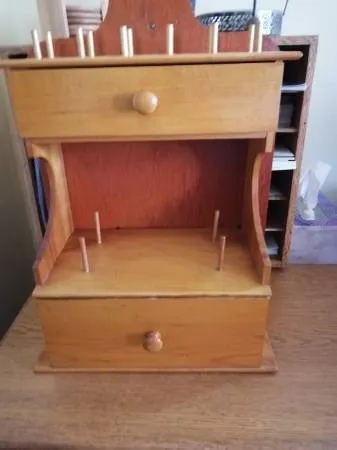 Nice older, solid wood sewing station It appears to have been hung at 1 time IF YOU CAN SEE THIS AD, THE ITEM IS STILL AVAILABLE I WILL NOT RESPOND TO EMAILS Cash only Local pick-up only 814-270-0014