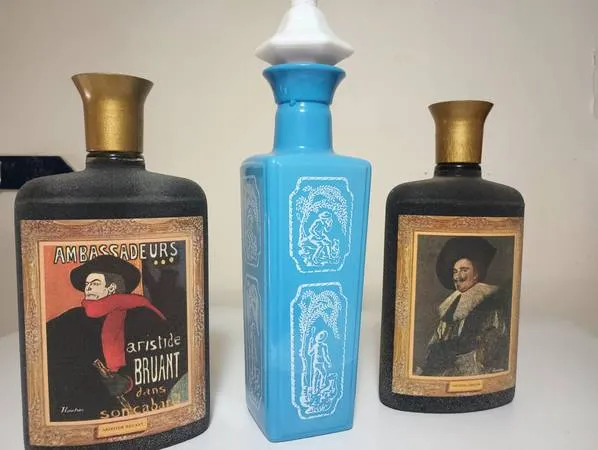 3 vintage liquor Decanters 2 are Jim Beam, the blue 1 is unknown but made of glass. All are in very good condition from the 1960 s call/text. $15.00 takes all 505-300-9440