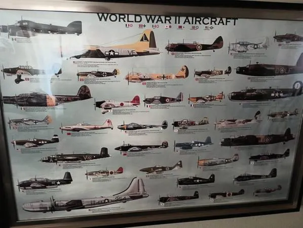 Very nice framed poster of world war III Aircraft 27 X 39 inches. Sturdy sold frame. Call/text 505-300-9440