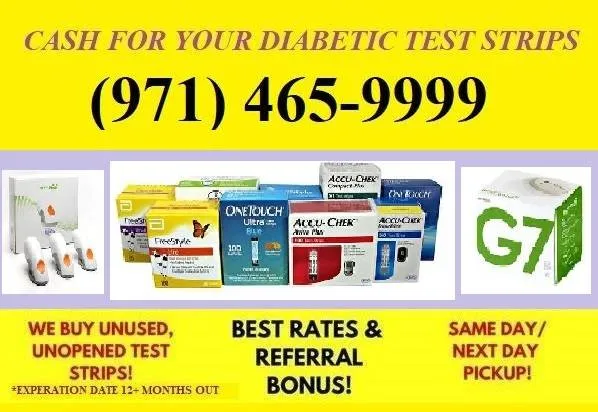 WE PAY CASH FOR YOUR UNWANTED AND UNEXPIRED TEST STRIPS. PAYING CASH 7 DAYS A WEEK FOR BOXES OF TEST STRIPS. 6 MONTHS OUT AND IN MINT CONDITION. TURN YOUR UNUSED TEST STRIPS INTO CASH. AVAILABLE FOR PICKUP EVERYDAY. $$$ Cash For Diabetic Supplies $$$ We pay cash for your unused and unexpired diabetic supplies! We pickup 7 days a week! Text or call and tell us what you have to see what we pay 971-465-9999 sell blood glucose test strips unused test strips accu-chek freestyle 1 touch verio 1 touch ultra contour next unused pump supplies medtronic humulin bayer accu-check aviva smartview freestyle lite Contour sensors humalin Dex com G 6 G 7 Transmitters Receivers Humulin R Humulin N Novalin Ozempic Wygovy Trulicity CALL OR TEST ME AT 971-465-9999