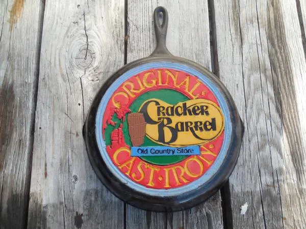 If you are reading this then the item is still available. Please call Steve 727-254-0280. Cracker Barrel 12 cast iron skillet. The advertisement on the back is cast into the metal in relief and then painted.