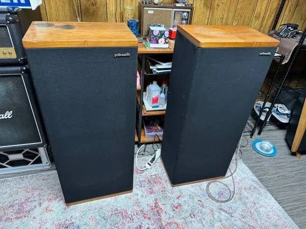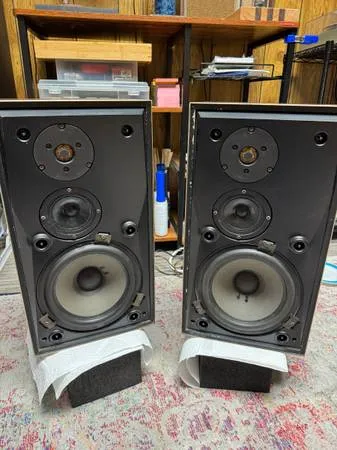 Here’s what I can tell you! Tops of speakers have been sanded /stained and look great. Everything works perfectly except 2 of the mid ranges on 1 Speaker have the dust caps pushed in, which is typical, but they work perfectly fine, Speakers sound really good with nice tight bass and if you don’t mind a little TLC project, these speakers sound really good! $200 takes them, located in kaukauna for pick up Call or text me anytime at 615-479-7955 * No Emails Please* Thanks muc...