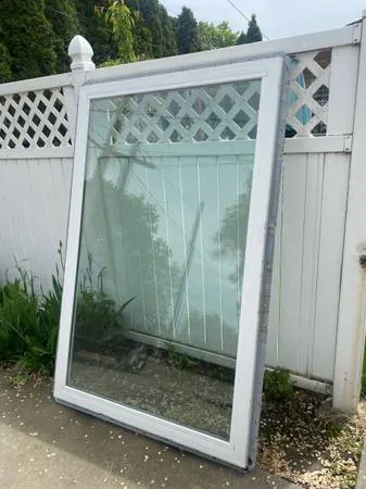 2 larger, vinyl thermal pain, picture windows. They do not open. Only 1 is in the picture, but I have 2 of them. They have a slight tent to them. They are an excellent condition. The measurements are in the pictures. And these can go either direction because there is no weep edge on them at the bottom. So they can go either way. $60 each or both for 100. 509-951-1571