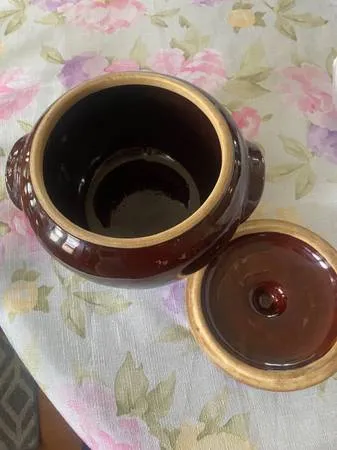 Antique 21/2 quart bean pot made of st 1 ware/crock with lid. $20. 509-951-1571