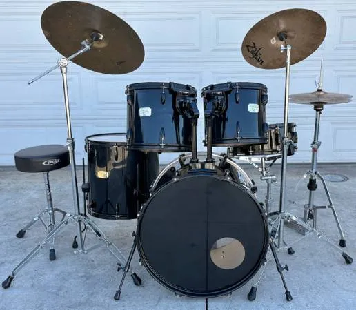 TEXT, CALL OR EMAIL. 310-498-1251 PAYPAL / VENMO / ZELLE OK Pearl Export Black Drum Set With Zildjian Cymbals And Hardware. Great working condition. Tuned up and ready to play. Includes everything shown. DRUMS, DRUMSET, DRUMKIT, KIT, BATERIA