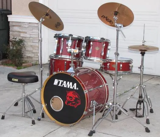 TEXT, CALL OR EMAIL. 310-498-1251 PAYPAL / VENMO / ZELLE OK Tama Rockstar Red Stain Lacquer Drum Set w/ Paiste Cymbals and Hardware. Used. Great working condition. Includes everything shown. Tuned up. Ready to play. DRUMS, DRUMSET, DRUMKIT, KIT, BATERIA