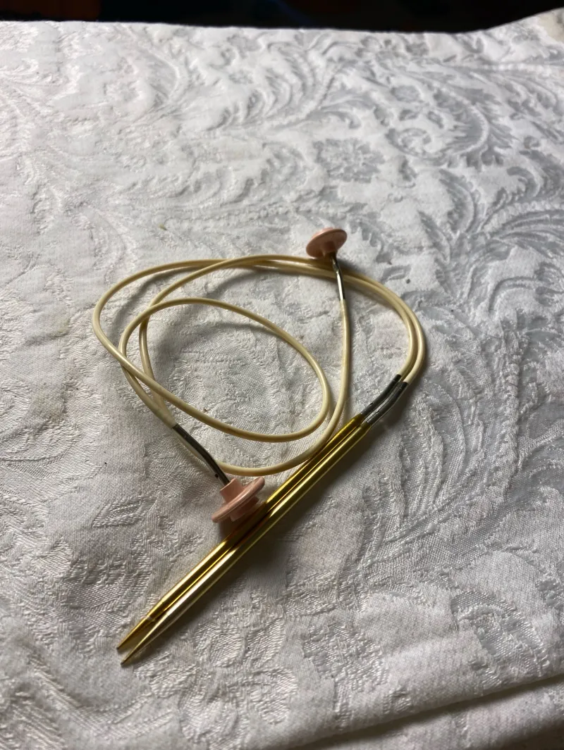 Gold metal knitting needles. No size marked but smaller needles. 6.5 or less Circular All exchanges are local pick up, cash only. The standalone Starbucks store at Cedar Plaza, Mountlake Terrace close to the entrance. Small parking lot to the left of Starbucks facing Cedar Way. 22805 Cedar Way/44th Ave West Mountlake Terrace 98043. NO Zelle, Venmo, Paypal etc. Cash only.