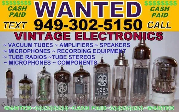 Paying top dollar for larger collections of Vintage electronics of all kinds! Radio Collections, Radio & amplifier ; TV & Radio Tubes, Test Equipment, Stereo Gear from pre-1980 s era, Recording Equipment, Speakers, Ham Radio Gear, LARGER LOTS of comp 1 nts like: RESISTORS, CAPACITORS, Reels of WIRE, METERS, SOLDERING MATERIALS, Service Manuals & Brochures, Parts & pieces of parts, etc. Collections considered should include at least 10 major pieces of equipment. Anywhere in southern California. We will travel to you, make an offer and pay cash up to $50,000 for major collections. Working condition not important, no collection too large for our budget! This ad NEVER EXPIRES - Always Looking! Dont throw ANYTHING away we will buy it all! Also buying Ham Radio Gear including radios, transmitters, linear amplifiers, tubes, telegraph keys, bugs, microphones, speakers, vacuum tubes, transceivers, receivers, hardware, accessories, etc. Large Collections, Estates, and Hoards are PREFERRED. Call only if ready to sell NOW! Call or text anytime / texting photos is strongly recommended! 949-302-5150 Anywhere in CA, AZ, NV Admiral Ampex Audio Research BALDWIN Bell Bogen Dynaco EICO Emerson Fisher GE Grommes Grundig H.H. Scott Harman Kardon Heathkit KD Kenwood Knight Lafayette Luxman Magnavox Marantz McIntosh Philips RCA Sansui SCOTT Sherwood Siemens Sony Stancor Stromberg The Voice of Music Western Electric Zenith Acoustic Research Advent Aiwa Akai Allied Altec Lansing Ampex Audiovox Bang & Olufsen Blaupunkt Bogen Bose Boston Acoustics Bozak Bradford Cambridge Audio Carver Cerwin-Vega Channel Master Concept Concord Craig Crosley Denon Dual Electronics Dynaco EICO Electrophonic Electro-Voice Element Emerson Empire Fisher Garrard GE Grundig H.H. Scott Hallicrafters Harman Kardon Heathkit Hitachi ITT JBL Jensen JVC Kenwood KLH Knight Kyocera Lafayette LG Lloyds Luxman Magnavox Marantz Matsushita McIntosh MCS Mitsubishi Motorola NAD Nakamichi National NEC Nikko Olson Onkyo Optonica Panasonic Parasound Philco Philips Philmore Pi 1 er Polk Audio Proton Quad Quadraflex RadioShack RCA Realistic Revox Roberts Rotel SAE Samsung Sansui SANYO SCOTT Sharp Sherwood Shure Silvert 1 Sony Soundcraftsmen Soundesign Stewart Superscope SYLVANIA Tandberg Tannoy TASCAM TDK TEAC Technics Tektronix Tenna The Voice of Music Thorens TOA Toshiba Vector Research Westinghouse Xantech Yamaha Zenith a/d/s/ AAL ACDelco Acoustat Acoustic Research ADC Admiral Advent Aiwa Akai Allied Allison Altec Lansing Ampex Ampro Apogee AR Archer AT&T Atlas Audax Audio Logic Audiovox B&W BALDWIN Bang & Olufsen Becker Bell and Howell BIC Blaupunkt Bogen Bose Boston Acoustics Bowers & Wilkins Bozak Braun BSR Calrad Canton Carver Celestion CENTURY Cerwin-Vega Concord Coral Craig Criterion Crosley CTS Dahlquist dbx DCM Definitive Technology Denon Design Acoustics DLK Dual Electronics Dukane Dynaco Dynaudio EICO Electrophonic Electro-Voice Emerson Eminence Empire Energy Epicure ESS Fane Fisher Fostex Frazier Garrard GE Gem Sound Genesis Goodmans Grundig H.H. Scott Hafler Hammond Harman Kardon Heathkit Heco Hitachi Infinity Isophon ITT Janszen JASCO JBL Jensen JVC KEF Kenwood KICKER Klangfilm KLH Klipsch Knight Koss Kraco Lafayette LG Linn Lloyds LOMO Lorenz Magnavox Marantz Marshall Martin McIntosh MCS Memorex Midland Mission Mitsubishi Monitor Audio Montgomery Ward Mordaunt Short Motorola MTX Mullard NAD Nakamichi National NEC Norelco NuT 1 OHM Olson OMEGA Onkyo Optonica Oxford Packard Bell Panasonic Paramount Parasound Peerless Phase Tech Phase Technology Philco Philips Pi 1 er Polk Polk Audio Premier ProAc Pulse Quad RadioShack RCA RCF Realistic Revox RFT Roberts Rogers ROLA RSL Samsung Sansui SANYO SCOTT Seas Sharp Sherwood Shure Siemens Silvert 1 Snell Sonance Sonic Sony Soundcraftsmen Soundesign Sparkomatic Speakerlab Speco Spendor Stephens Trusonic Stromberg SYLVANIA Tandberg Tannoy TEAC Technics Techwood Tektronix TELEFUNKEN Tempest Tesla The Voice of Music Toshiba Triad Utah uxcell Vanco Vandersteen Vector Research Visonik Webster Electric Weltron Western Electric Westinghouse Wharfedale Yamaha Zenith AEA Alinco Allied Alpha Ameritron AMP Amperex Amphenol AnyT 1 Archer ARRL ARRL Astron Atlas Azden Baofeng BENCHER Bendix Blue BTECH Cobra Collins Comet Connex Cornell Dubilier Cushcraft Custombuilt Daiwa Delta Dentron Diamond Diamond Drake Eagle Eddyst 1 EF Johnson EICO Eimac Elecraft ETC Flex Galaxy GE General Gonset Hallicrafters HamGadgets Hammarlund Hammond Handmade Harris Heathkit Heil Heil Sound Henry Hi-Mound HP Hustler HYGAIN Icom INRAD ITT Jabra Jackson Jensen Jetstream Johnson Johnson Viking JRC Kantronics Kenwood Kit Knight Lafayette LDG LEIXEN Linear Mallory Marantz MFJ Micronta Midland Miller Mirage Motorola National Ohmite Olson OPEK Palomar Palstar Panasonic Philips Philmore PolyPhaser President QST Quansheng QYT Racal RadioShack Ranger RCA Realistic Regency Retevis RME Rogers Rohde & Schwarz RTL-SDR Samlex Sangean SCOTT Shure Siltronix Simpson Sinclair Stancor Standard Stryker Svetlana Swan TECSUN TeleType Tempo Tempo 1 TEN-TEC Teradyne Tesla Thordarson Tigertronics TPL TRAM TTI Tungsol TYT Uniden Watkins-Johnson Western Electric Westinghouse Workman WOUXUN Yaesu Youkits Zenith