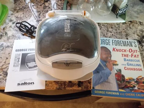 Original George Forman Grilling Machine,1994 , clean ,works excellent, all original ,with cook book and owners manual ,white ,$15.00 ,no text messages ,please leave a voice message ,all calls returned 617-710-1779
