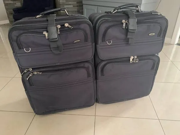 American Airlines Rolling Travel Luggage Bags/Suitcases. Elegance Collection. Large Suitcases. THESE ARE NOT CARRY ON BAGS!!! Excellent Condition. 2 available. $60/each. Both for $100.00 Size: 25 X 18 X 12 Rolling suitcase luggage w/heavy duty inline skate wheels and a locking retractable push/pull handle. Multiple front panel pockets -Expandable luggage including wheels and handles - Multiple inside pockets for holding small items and accessories - Convenient side handles with reinforced padded top handle. This roller suitcase makes lifting and carrying your luggage extremely easy. If interested please call, text, or e-mail. 713-560-3010.