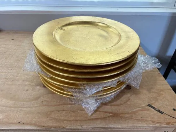 Beautiful heavy gold charger plates purchased from Macy’s. Paid $19 for each. Get the set of 8 for 30. Theses are not the cheep thin gold 1 s you see at the dollar stores. These are elegant and have an air of quality that can’t be missed. From a pet/smoke free home. Meet at NW corner of Costco lot. Call or text only please, 406-298-9699. $30 cash.