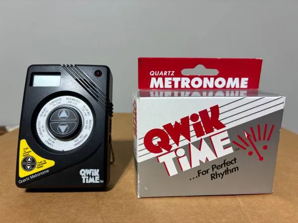 Qwik Time quartz metronome used and in excellent condition. Original box included. Loud speaker, extended speed range, over 200 different speeds, A 440 T 1 for tuning, Earphone jack, superior accuracy. From a pet/smoke free home. Call or text only please 406-298-9699. Only $10 and meet at Costco.