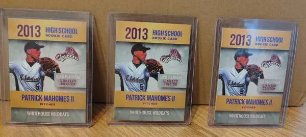 2013 Mahomes first ever card! Wildcats High School Pitcher , super RARE! Only 1 on eBay for $50. Only 3 left. $25 each. Come anytime or I can deliver. 760-458-3888 Thanks
