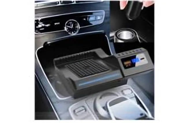 Fits in ashtray compartment. Has extra USB ports Traded my C 300 , new car came with Wireless charging. Works with Android or Apple, LG, ect. Any cell phone with wireless charging Call john315-657-3139