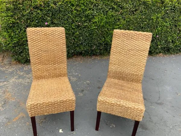 2 solid wood wicker chairs the dimensions are 18.5 x 21 x 42 with the seat h 8 of 20 inches Please contact mike @ 805-286-5466. All emails go directly to spam. Mmsbtz