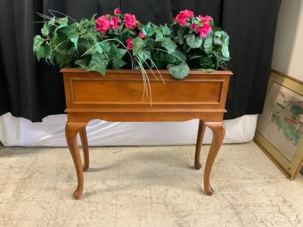 solid mahogany standing planter box made by The Bombay Company, made in Canada. 33.5 x 13.5 x 30.25. Please contact mike @ 805-286-5466. All emails go directly to spam. Mmsbtz
