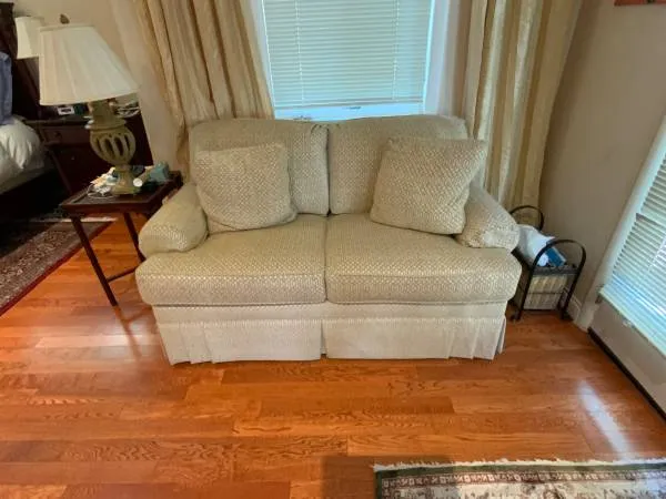 This loveseat and chair is in good condition very comfortable. Made by Thomasville and is very high-quality. The dimensions for the loveseat are 65 x 38 x 39. Sheet h 8 is 21 inches The chairs dimensions are 41 x 37 x 38 seat h 821 inches. Call mike all emails go directly to spam 805-286-5466. Mmsbtz