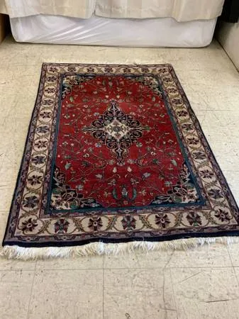 Handmade hand knotted Indian rug 4 x 6. Please contact Mike @ 805-286-5466. All emails go directly to spam. Mmsbtz