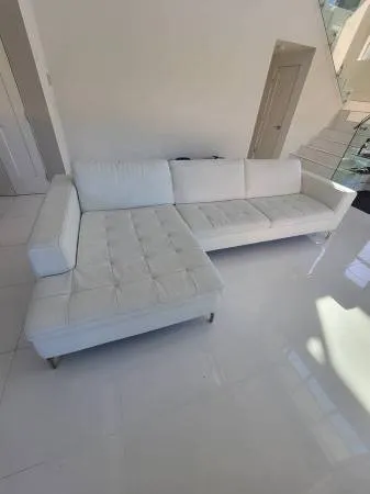 Natuzzi Italia White Tufted Leather Sectional Sofa Couch - Modern and comfortable These are like NEW, Very cool and modern, works great with metal or glass styles. Save over half price, Retails for over $7000, I can deliver for a $100 fee local Palm Springs. Full Italian leather on all surfaces, very high quality. Purchased new from Rapport Furniture on El Paseo, Contemporary sectional, Perfect for your contemporary mid century interior. Calls or texts ONLY, If it is listed then it is still available, call 214-606-0500 we are located in south palm springs area near the airport. Thank you!