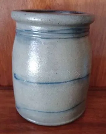 513-295-5513 North Star St 1 ware Crock Pottery Brown Glaze Pitcher Raised Grape Vine North Star St 1 ware Crock Pitcher is a stunning piece featuring a rich brown glaze and a raised grape design. Perfect for collectors or as a charming addition to your kitchen decor, this pitcher combines functionality with classic style. Saltglaze St 1 ware Pitcher features a Grape & Lattice design.
