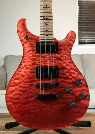 *Excellent Condition* PRICE IS FIRM. NO TRADES. Features: • McCarty 594 • Wood Library • Salmon Finish • Artist Grade Quilt Top • 3-Piece Swamp Ash Back • Figured Maple Neck • Pattern Vintage Carve • Figured Maple Fretboard • Black Corian J-Birds w/Paua Centers Inlays • Smoked Black Hardware • 58/15 LT Pickups • 2-Piece Stoptail Bridge • PRS Vintage Style Tuners • 2 Volume and 2 Push/Pull T 1 Controls • 3-Way Toggle Pickup Switch • 8.10 lbs Includes: 1 PRS guitar, case candy, COA and its PRS hardshell case. Plays PERFECTLY with no problems. If you can, text me. Ill respond quicker but Ill answer to both texts and emails.979-820-2629.