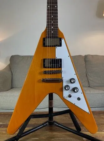 *Excellent Condition* PRICE IS FIRM. NO TRADES. Features: • Gibson • Flying V • Mahogany Body • Gloss Nitrocellulose Lacquer Body Finish • Antique Natural Color • Mahogany Neck • Slim Taper Neck Shape • Set Neck Joint • 12 Fret Board Radius • Rosewood Fingerboard • Acrylic Dot Fingerboard Inalys • 22 Frets • 24.75 Scale Length • 1.694 Nut Width • Graph Tech Nut • Gibson Burstbucker Type 2 Humbucker Neck Pickup • Gibson Burstbucker Type 3 Humbucker Bridge Pickup • 2 x Volume, 1 x T 1 Controls • 3-Way Pickup Selector • 6.54 lbs Includes: 1 Gibson guitar, case candy, COA and its Gibson hardshell case. Plays PERFECTLY with no problems. If you can, text me. Ill respond quicker but Ill answer to both texts and emails.979-820-2629.