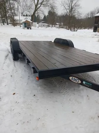 16 w/2 dove tail totaling 18 ft 610 wide between fenders Has electric brakes Ramps tuck up under both sides Like new condition Comes with new spare tire Gvwr 7000 Asking 3000 Clean title in hand ready to be transferred Cash only If its posted ITS AVAILABLE For more pics or info please text 814-795-2023