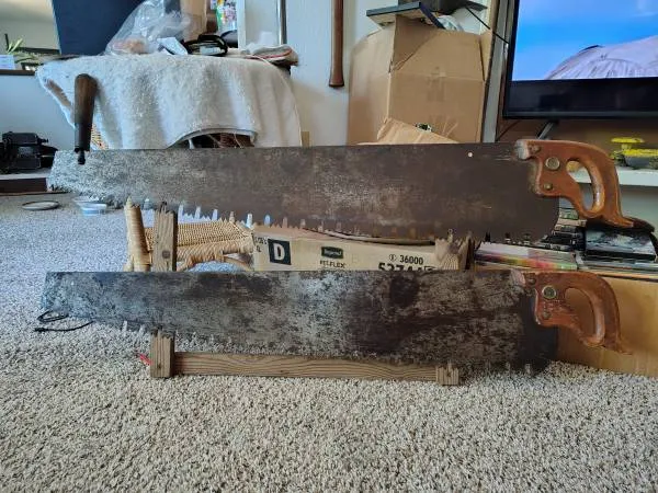 A pair of vintage new crosscut saw handles 40.00 call 971-431-9466.