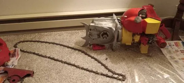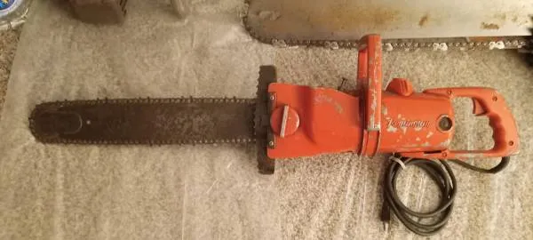 A vintage 1950 s Remington electric chainsaw very rare 100.00 call 971-431-9466. Original orange with black bar. Used not new.