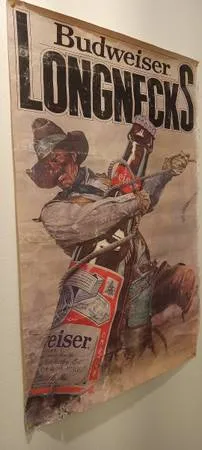 Vintage Budweiser longnecks poster 15.00 creases wrinkles and small border tears rare poster original bought new in San Francisco in mid 80 s. Call 971-431-9466.