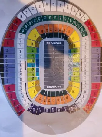 BRONCO SEASON TICKETS SECTION 1 OO ROW 374 AISLE SEATS 53-56 ACROSS from 101 $3400 each for SEASON TEXT 303-523-7749