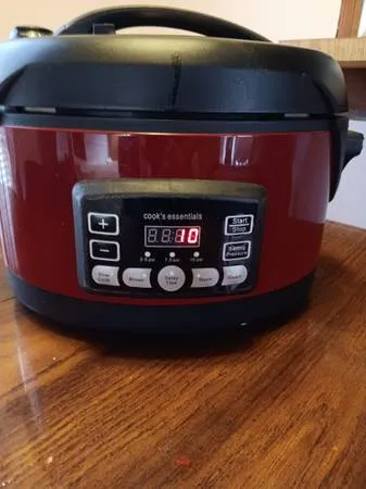 Maroon Cooks Essentials pressure and steamer cooker. 61/2 courts. In great shape works great. 4 years old. $15.00 cash only or best offer. You pick up. Call Wayne 443-600-6882