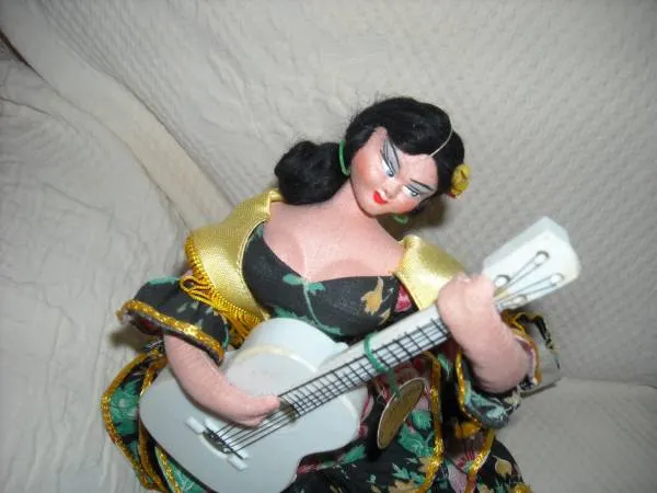 Vintage 1960 s, FLAMENCO DANCER DOLL - $30 Original Tag: A FLARE DOLL Hand Made in Spain 11 Tall. Playing a Guitar. Dress has a 7 train. Original owner. Has been stored in a box for over 60 years. Never played with. Doll was displayed in a cabinet, for display only, when I was a child. Excellent Condition. Original Box. 949-492-7262 Landline Answering Machine on 24-7. No Caller ID. Must lv. your ph. # w/area code, clearly. Do not ask if the Flamenco Dancer Doll is still available...