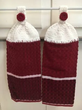 Crocheted Top Kitchen Hand Towels - Lot of 2 - $15 Excellent, new condition, never used. Washable 100 Terry Cloth. 2 t 1 wine colors: Burgundy, Merlot, Claret. Burgundy yarn buttons. 17 long. 949-492-7262 Landline Answering Machine on 24-7. No Caller ID. Must lv. your ph # w/area code clearly, so I can return your call. Do not ask if the crocheted top kitchen hand towels are still available. If you see them, we have them. The listing will be deleted the day the kitchen hand towel...
