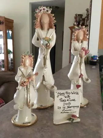 4 piece set new in boxes CANADIAN ARTIST HEATHER GOLDMINE 1 of a kind hand painted signed original year 2001. Comes with certificate of authenticity cards. $65 and price is Firm. Reply to ad or call 850-981-0119. I am in Milton.