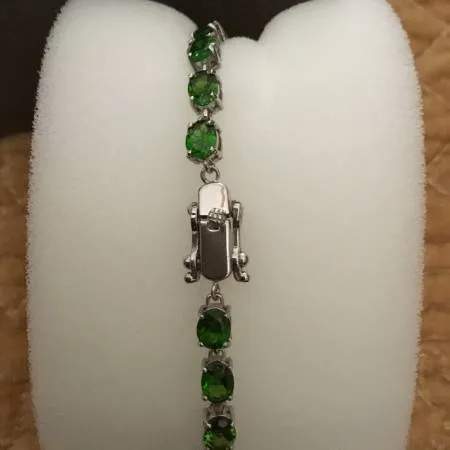 ***** NEW RUSSIAN DIOPSIDE 9 ctw TENNIS BRACELET . PLATINUM over STERLING SILVER. Has 2 safety latches. $95 PRICE is FIRM. reply to this ad or call 185-098-1011