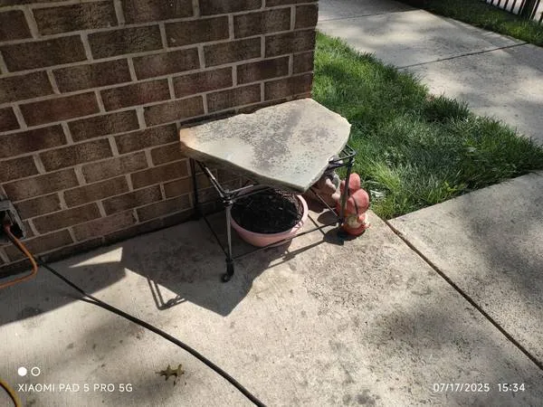 Patio side st 1 table ,Metal rack with natural st 119 x 15 x 16 Ask:$25 ,firm . Pick up community address. 10724 West Drive, Fairfax 22030. phone :703-395-6029 text By the way, My name: Andy I am piano tuning technician,if you and your friends piano need tuning, please let me know,if lost my information, please search piano tuning , and you can find my piano tuning service, thanks. 🙏❤️