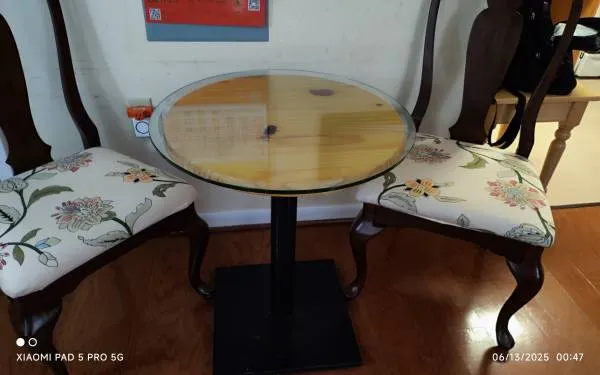 Pedestal metal stand wood Dinning table with 2 large size queen Anne chairs Ask $185 .firm Pick up community address. 10724 West Drive, Fairfax 22030. phone :703-395-6029 text By the way, My name: Andy I am piano tuning technician,if you and your friends piano need tuning, please let me know,if lost my information, please search piano tuning , and you can find my piano tuning service, thanks. 🙏❤️