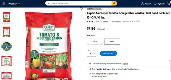 $8 a bag. THESE ARE 20 LB BAGS. The 1 in photo is $8 for 10 lbs normally in retail. 12-10-5 Ratio So, these are 1/2 price of what you would normally pay. Expert Gardener Tomato and Vegetable Food 20 lb bags. Fertilizer bag bags Tomato plant crop grass vegetable phone- Call or Text 717-645-4218