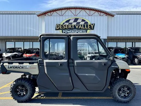 Desert Valley Powersports Ask for: Sales Department 509-786-0260 325 Merlot Drive Prosser, WA 99350 Enter this to see more images plus all other inventory we have available: http://lyv.cc/E 3 FLP 2024 CFMOTO UForce 1000 XL ALPINE EDITION Price: $23,399.00 Basic Information: Year: 2024 Make: CFMOTO Model: UFORCE Trim: 1000 XL ALPINE EDITION Stock Number: 000680 Condition: New Type: Utility Primary Color: Desert Tan Engine: Fuel Type: Gasoline Carburetion Brand: Bosch Carburetion Type: Fuel Injected Cylinders: 2 Displacementci: 58.7 Engine Cooling: Liquid Engine Sizecc: 963 Engine Stroke: 4-Stroke Fuel Capacitygal: 10.6 Fuel Injector Fuel Requirements: Regular HorsepowerkW: 53 Horsepower RPM: 7000 Starter Type: Electric TorqueFt Lbs: 55 TorqueNm: 74.6 Torque RPM: 6500 Valve Configuration: SOHC Valves: 8 Valves Per Cylinder: 4 Chassis / Suspension: Frame: Steel Front Adjustable Fork Pre-Load Number Rear Shock Absorbers: 2 Rear Adjustable Shock / Spring Pre-Load Rear Stabilizer Bar Rear Suspension Material: Steel Steering Control: Steering Wheel Steering Type: Power Suspension - Front: Independent A-Arm Suspension - Rear: Independent Double A-Arm Comfort: Clock Digital Instrumentation Hour Meter Seat Material: Vinyl Seat Type: Bench Drivetrain: Transmission Type: Continuously VariableCVT Engine Braking System Differential Lock Differential Lock Location: Rear Driveline Type: Selectable 4 X 2 / 4 X 4 Number Of Driveline Modes: 2 Hi / Low Range Primary DriveFront Wheel: Shaft Primary DriveRear Wheel: Shaft Reverse Transmission Brand: CVTech Primary DriveEngine / Transmission: Chain Other Information: Cab / Bed Divider Cab Cage Cab Canopy Cab Canopy Material: Hard Cab Doors Cab Doors Material: Soft Cab Rollbar Cargo Bed Integral Tie-Down Hooks Front Fender Flairs Rear Fender Flairs Power Outlet Safety: Brakes - Front: Hydraulic Disc Brakes - Rear: Hydraulic Disc Roller Fairlead Seat Belts Headlights Specifications: A-Arm Skid PlateFront A-Arm Skid PlateRear Bash PlateFront Bash PlateRear Bed Capacitykgs.: 453.6 Bed Capacitylbs.: 1000 Body Material: Plastic Cargo Bed Tilt Dry W 8 lbs: 1918 Dry W 8 kg: 870 Front Tire Diameterin: 27 Front Tire Width: 9 Full Length Skid Plate Ground Clearancein: 11 Ground Clearancemm: 279.4 H 8 Inches: 78 H 8 mm: 1981.2 LengthInches: 148 Lengthmm: 3769.4 Rear Hitch Rear Tire Diameterin: 27 Rear Tire Width: 11 Tire Tread Type: All Terrain Turning Radiusft: 36.1 Wheelbasein: 112.2 Wheelbasemm: 2849.9 Wheels Composition: Aluminum WidthInches: 63 Widthmm: 1615.4 Winch Winch W 8 kgs: 2041.2 Winch W 8 lbs: 4500 Description: *Price does not include factory fr 8, dealer setup, sales tax, license and $200 negotiable doc fee!* 2024 CFMoto UForce 1000 XL EVERYTHING SUPERSIZED BUT THE PRICE. Big jobs call for a big UTV. You could pay much, much more for a 6-seater. But once again, CFMOTO brings you this fiscally superior option. And this crew transport comes nicely equipped. You even get the 4,500 lb. winch, standard. Features may include: Engine The 963 cc CV-type twin features 8 valves and a single overhead camshaftSOHC. With electronic fuel injectionEFIand efficient liquid cooling, this engine packs a punch, delivering an impressive 71 hp and exceptional medium and low-speed torque. It gives you a towing capacity of 4500 pounds. Comfortable Space for 6 6 ergonomic bench seats include safety belts, plenty of legroom, and plenty headroom for adult riders. Conveniences include under seat storage, cup holders, and USB/12 V outlets. Front seats provide 4.25 of front to rear travel. There’s even a tilt steering wheel providing 41-degrees of adjustability. 1,000 LB. Capacity Tilting Cargo Box Unload whatever you’re hauling easily with a nitrogen gas-assisted dump box. Handy tie-downs come standard on the cargo box. 4,500 LB. Winch Help a buddy or yourself out. The UFORCE 1000 XL winch features lightw 8, easy-to-handle synthetic rope with the strength needed to get the job d 1. Desert Valley Powersports 325 Merlot Drive Prosser, WA 99350 Ask for: Sales Department Primary phone:509-786-0260 A 27 FBAFAEA 464 DBBB 650 D 168074 EE 06 C 3996708511924597