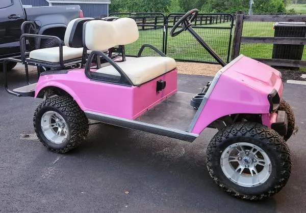 2005 Club Car DS model. Custom lift and wheels. Batteries just replaced. No roof or windshield. It has some minor markings on the seats but overall in good condition and runs perfectly fine. Brand new charger included. Asking $3500. Harry- 804-397-0356
