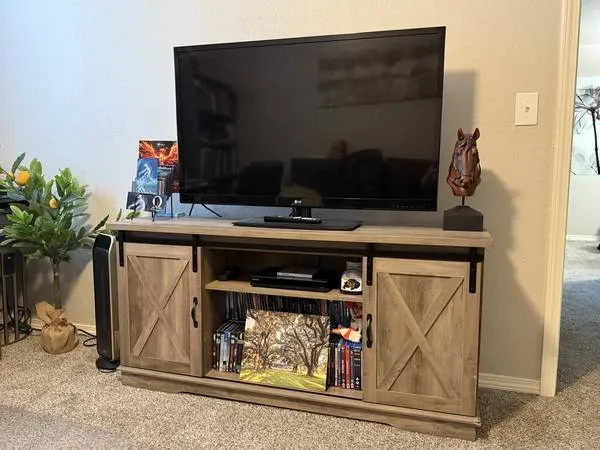 https://www.walmart.com/ip/Woven-Paths-Sliding-Farmhouse-Barn-Door-TV-Stand-for-TVs-up-to-65-Grey-Wash/930600274 Bought in December 2023 from Walmart$200. Sturdy. Excellent condition, no flaw. Fit up to a 65 TV. I need to resell it since I am moving out of this area. Need you to pick up. My list: https://lawton.craigslist.org/fuo/d/lawton-lg-c 2-77-inch-oled-tv/785-393-6299.html https://lawton.craigslist.org/fuo/d/lawton-solid-wood-tv-stand/7853936940.html https://lawton.craigslist.org/fuo/d/lawton-sturdy-tv-stand/7853937317.html https://lawton.craigslist.org/fuo/d/lawton-costco-sleeper-sofa-futon/7853937795.html https://lawton.craigslist.org/fuo/d/lawton-executive-desk/7853938116.html and some small stuff